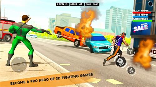 下载绳索青蛙大战黑帮是一款热血格斗手游,化身正义的绳索英雄,融入城市的环境中进行冒险。在游戏中,玩家需要消灭黑暗势力并解锁道具来进行战斗。提供刺激的对战方式,玩家可以选择格斗英雄一起战斗,成为拯救城市的英雄吧。