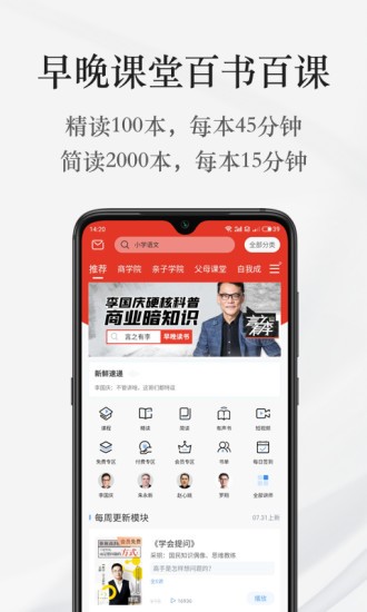 下载早晚读书APP是由当当网创始人李国庆推出的一款知识付费阅读的APP,现在不少人都喜欢使用手机阅读,通过一些高质量的书籍可以了解到更多知识,早晚读书APP为用户提供众多的优质内容,帮助用户提升自身整体的涵养。