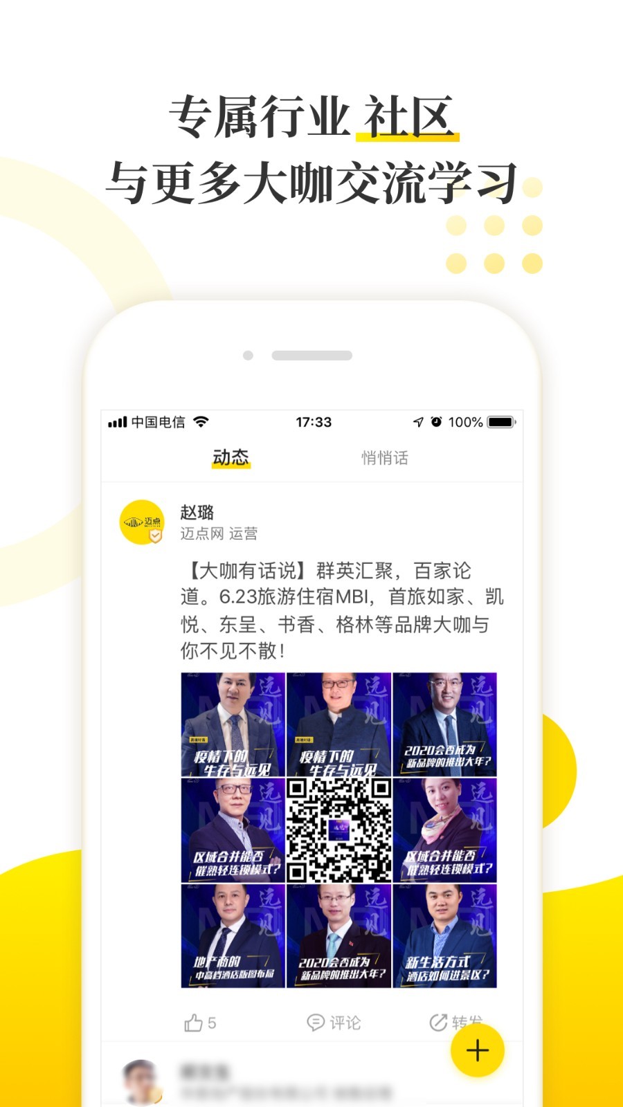 下载迈点App是针对旅游住宿业打造的一款商业信息服务软件,这里有最新的行业相关资讯政策,还有专属社区和大咖们一起交流学习,高端人脉圈精准拓展人脉。