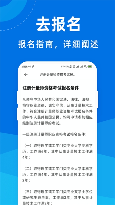 注册计量师宝典app是一款专为想要注册计量师证件的伙伴设计的,在这里汇集了海量专业知识点,包含了考试资讯内容,可以随时了解报考相关问题,实时更新专业课程和题库内容,帮助需要考证件的伙伴,轻松进行备考拿证,可以随时发现相关资讯,即可使用哦!